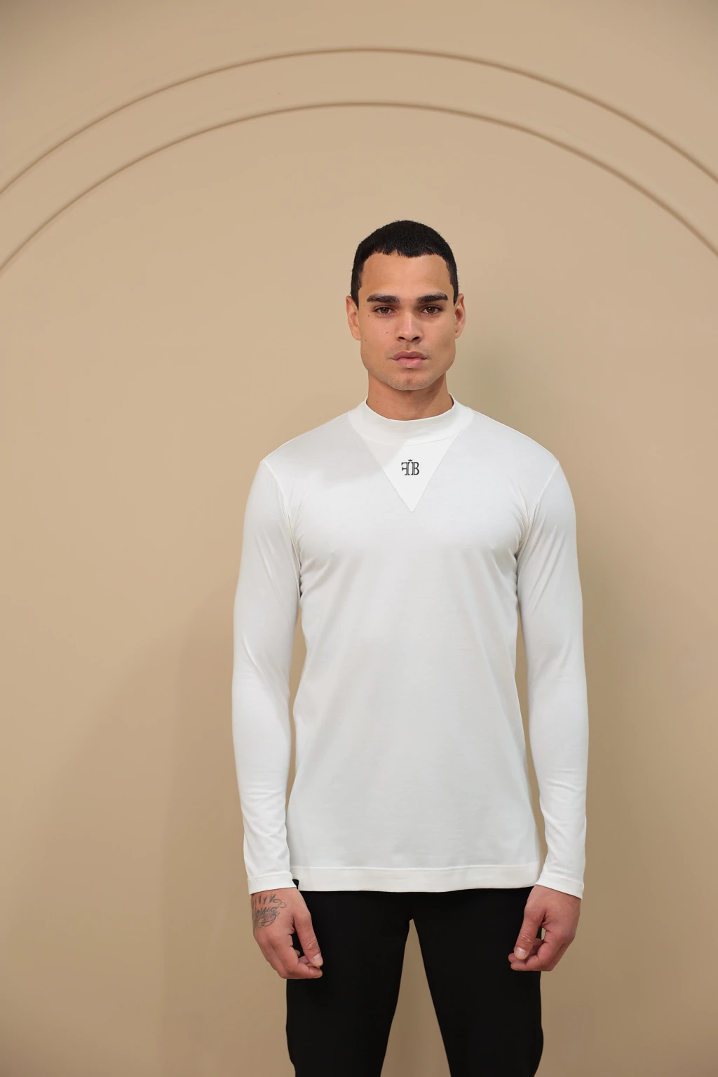O detalhe em V aplicado em silk na parte frontal adiciona um ponto de destaque sutil e moderno, conferindo identidade sem perder a simplicidade. A gola média completa o design com um toque equilibrado entre casual e sofisticado.