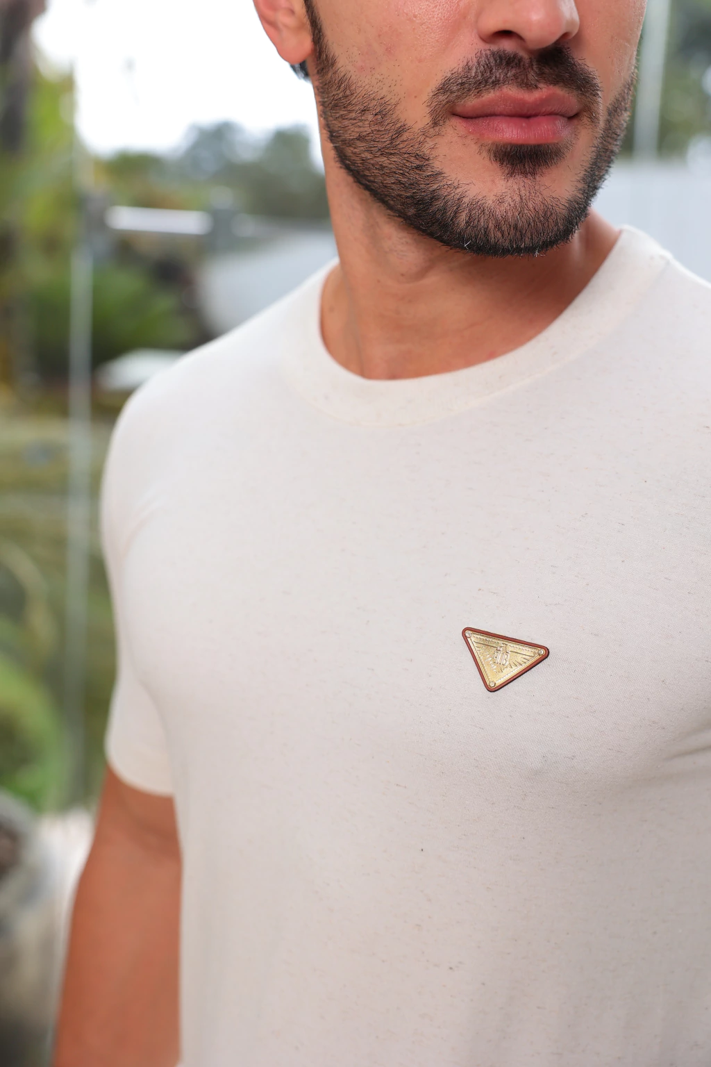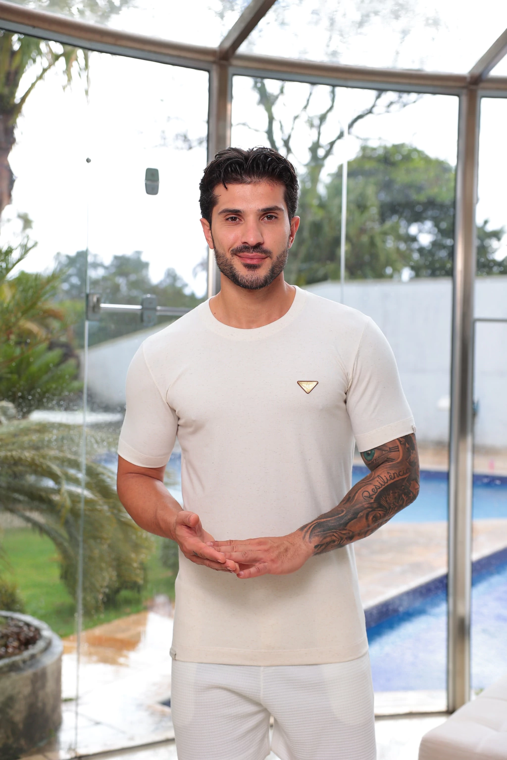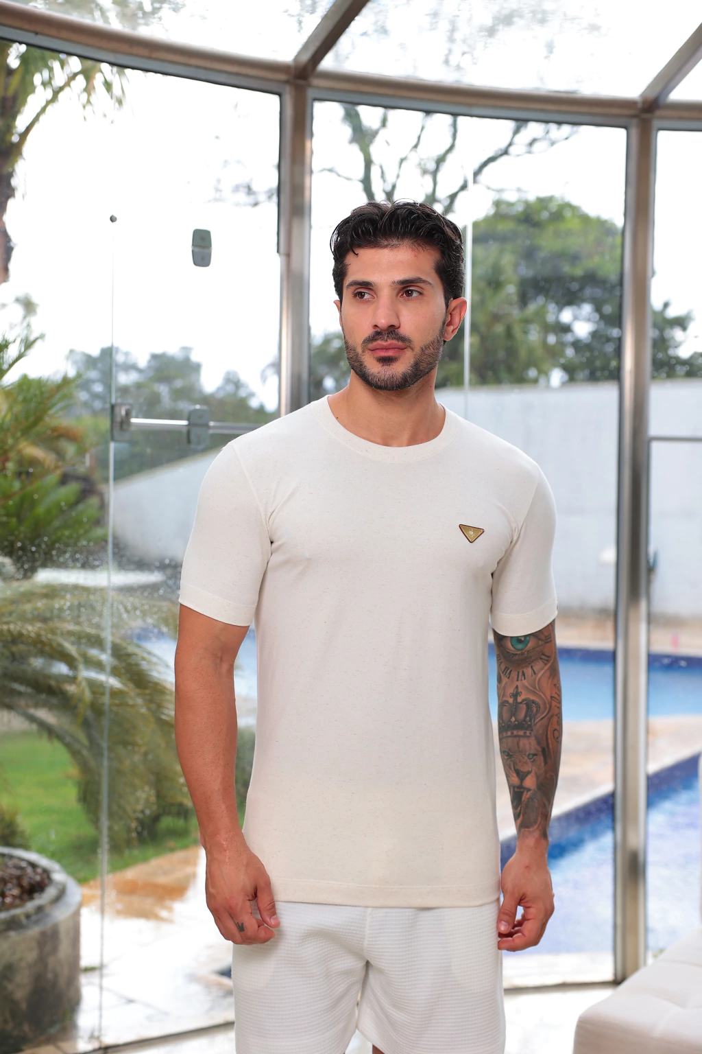 A Camiseta Slim de Linho com Aplique de Metal une sofisticação natural e toques de exclusividade em uma única peça. Confeccionada em linho premium, oferece leveza, frescor e caimento impecável, valorizando o corpo com conforto e estilo.