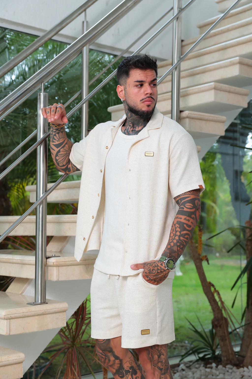 A camisa com bolsos frontais e fechamento por botões traz um visual contemporâneo, enquanto o short com cintura ajustável garante liberdade e praticidade no dia a dia. Ideal para quem busca um look casual, moderno e versátil, com o padrão de exclusividade da FB Exclusive.