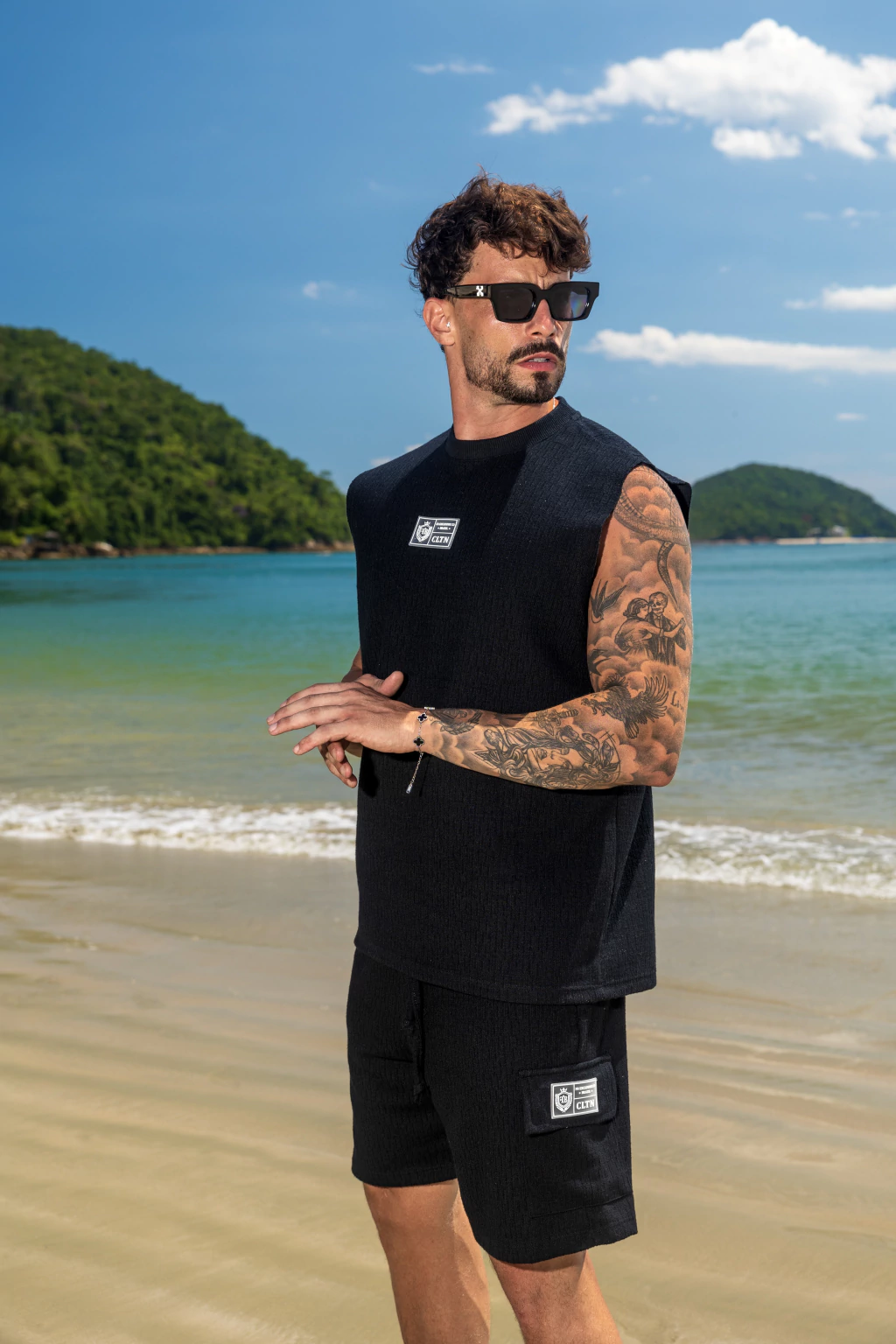 Conjunto confeccionado em malha texturizada tweed, combinando sofisticação e modernidade. Com uma modelagem oversized impecável, traz conforto e estilo em cada detalhe. Os bolsos cargos funcionais adicionam praticidade, enquanto os acabamentos emborrachados elevam o design com um toque de inovação. Uma peça básica e, ao mesmo tempo, ousada, graças ao seu tecido exclusivo e diferenciado. O look ideal para quem busca elegância descomplicada em qualquer momento do dia.