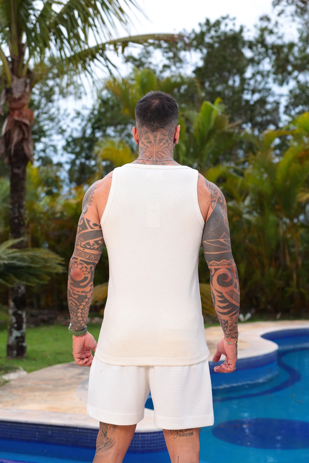 A regata masculina perfeita para quem busca estilo e conforto em qualquer ocasião. Confeccionada em tecido de ribana premium com a combinação ideal de elastano e linho, oferece toque suave, respirabilidade e liberdade de movimento. Seu design slimfit modela o corpo com elegância, enquanto os aviamentos básicos e discretos garantem um visual moderno e sofisticado, sem excessos.